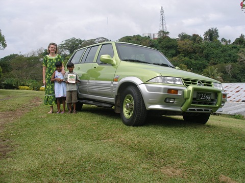 On September 11, 2007 we went out to Pango village to attend the dedication service of their new sanctuary. It is a lovely building and the prettiest Assembly of God church in the country! The photo on the left shows Gary posing with the pastors and important guests. Lori is posing with Rev. Tom Ierongen from Tanna and Rev. Berry Kalotrip of Pango AG. Pastor Tom was saved under Lori’s parent’s ministry in New Caledonia in the late 1960’s and she has known Pastor Berry’s family for many years too!