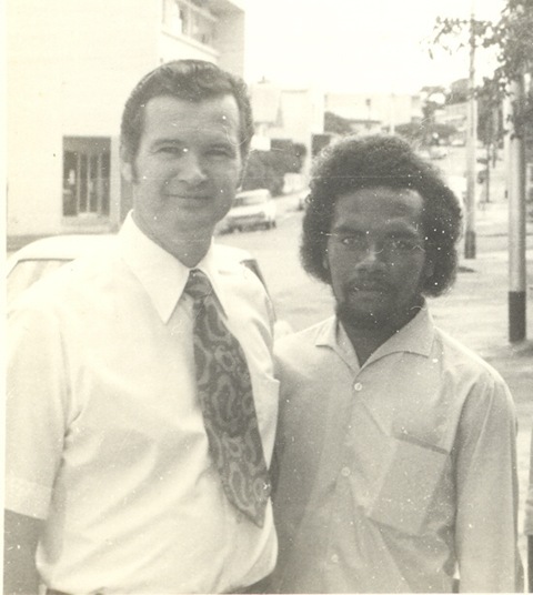 The black and white photo was taken in 1969-1970 in New Caledonia; William is the little boy on my left. His little sister and cousins are also in the photo. The color photo on the right was taken this afternoon of William and myself after the media committee meeting.