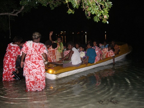 After service we enjoyed a cup of tea before heading back down to the beach to catch a small motor boat back across the channel. You can imagine the laughter and fun as a hundred or more women got into small overloaded boats and crossed the ocean channel in total darkness!