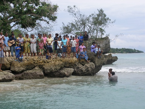 Good Friday is a holiday in Vanuatu and we celebrated by going to a baptismal service at the ocean. It had poured rain all week long and the day was overcast but it did not rain. Thirteen people from “We Care” AG church were baptized by their two pastors. Afterwards, the church ladies served a wonderful meal and everyone enjoyed a relaxing afternoon.