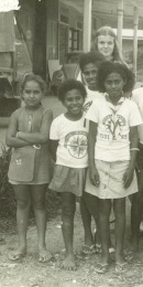 Linette, on the left above, was a little girl in Sunday School back then. The black and white photo to the left shows her with the first Royal Ranger troop in Santo in 1975. She is now a young grandmother and secretary at the Vanuatu AG national church office here in Port Vila.