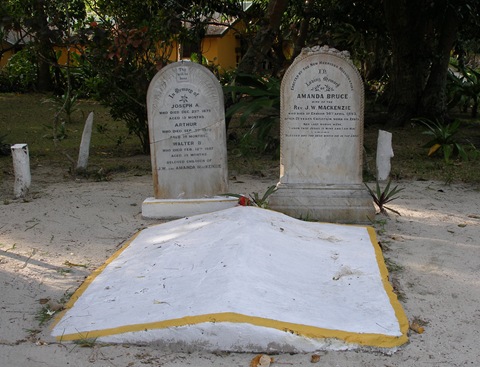 Recently, we went over to Erakor Island on the resort’s ferry to walk around the island and see where the early missionaries are buried. Rev. J. W. and Amanda Mackenzie lost three young children, Joseph aged 13 months died Christmas Day 1875, Arthur aged 19 months died 2 September 1878 and Walter aged 18 months died 12 February 1887. One can only imagine the heartbreak which accompanied each death.
