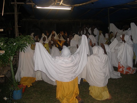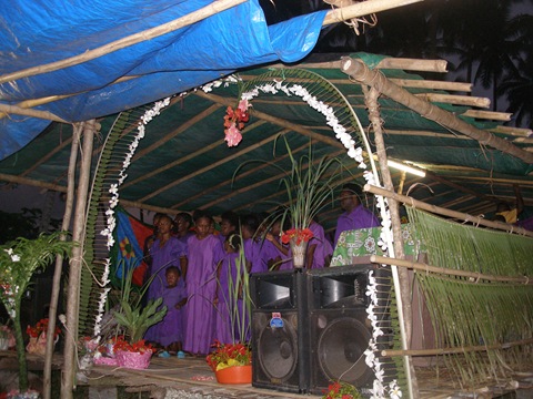 Nightly drama presentations  Outdoor camp stage with Tautu youth choir singing