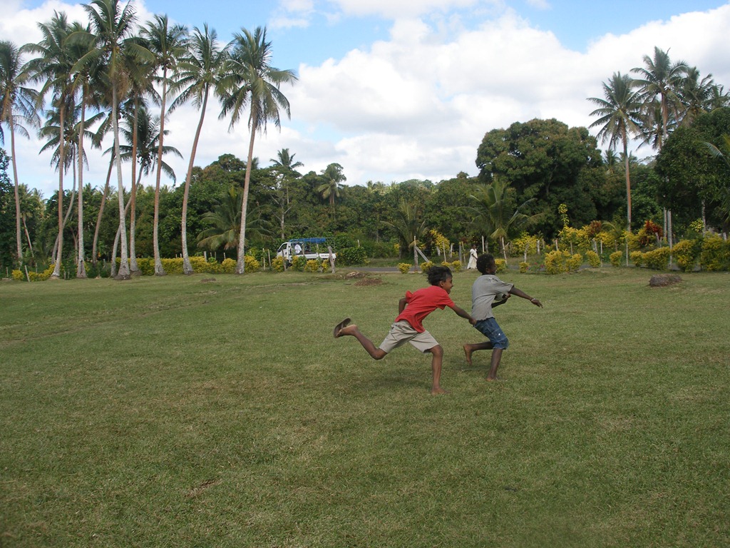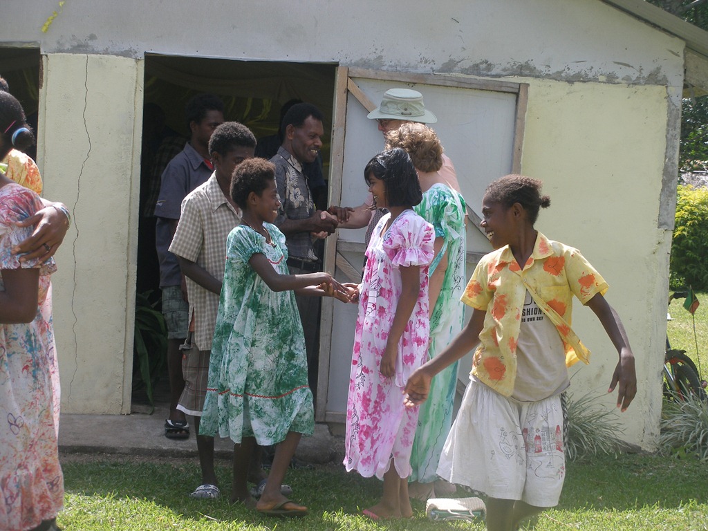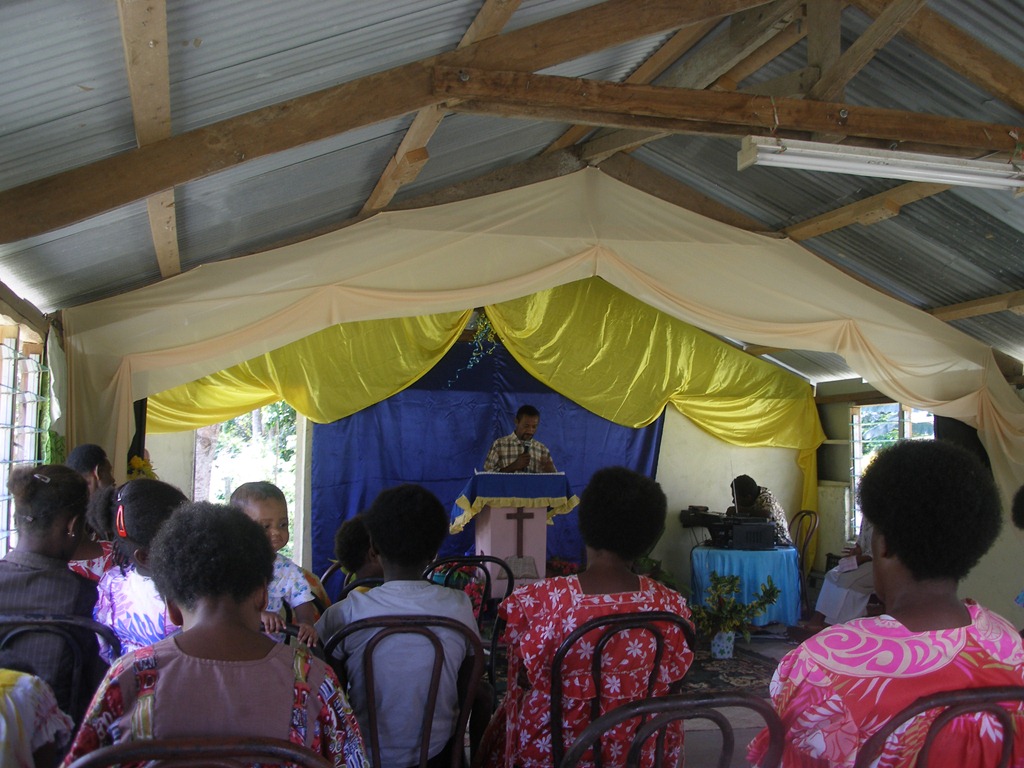 This morning we were invited to speak at Macedonia Church in Paonangisu village on the north side of Efate island. We live on the south side of the island so it was only about an hour away. When we got to church we found out that the fiancé of a young woman in the church had died the day before. This couple had planned to get married a few weeks ago but he became very ill on his home island and never recovered. In light of these circumstances, Gary decided to speak on I Thess. 4:13-18 concerning “our hope”. After service, we had a lovely lunch of fresh fish which the pastor had caught the night before and the children enjoyed running and playing with new friends.