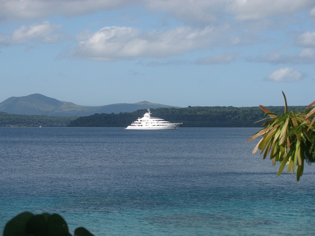 On the way home we were amazed to see an huge private yacht moored out in this quiet bay of North Efate. Quite a contrast.