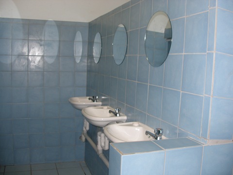 The renovation work on the men’s bathroom is just looking great! Here is Gary inspecting the newly laid wall tile and sinks! Compare the before photos (previously posted campus renovations) with today’s … and you can see how much progress we are making. Thank you for your continued support to renovating the JBI campus!PC090007