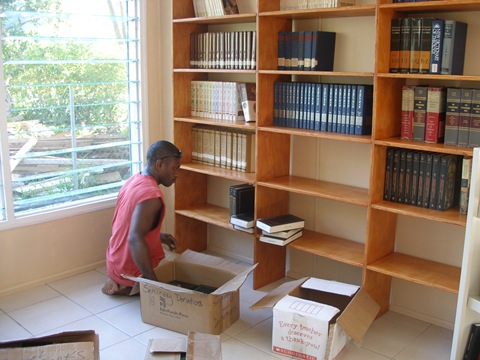 I couldn’t help myself, just had to give you another update on the progress of the new library in what used to be called “the dungeon” downstairs of the old house. Well, it is just looking great and I get excited every day when I see it! Job, Nabang and Toto have been very busy tiling the floor and everything is coming together nicely. We are racing the calendar hoping to have everything ready for when the students arrive on February 11th. What a great surprise it will be for them!