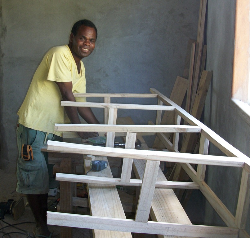 Pastor Mendar (below) who is helping us out for a couple more weeks, is recouping leftover lumber and building 3 bed frames and built-in closets for each room. Which leaves us just having to buy mattresses. He has been such a blessing!