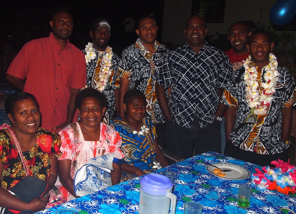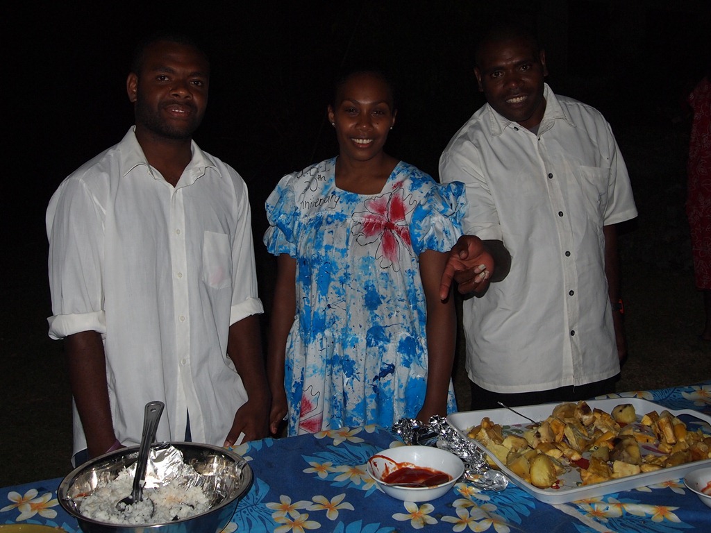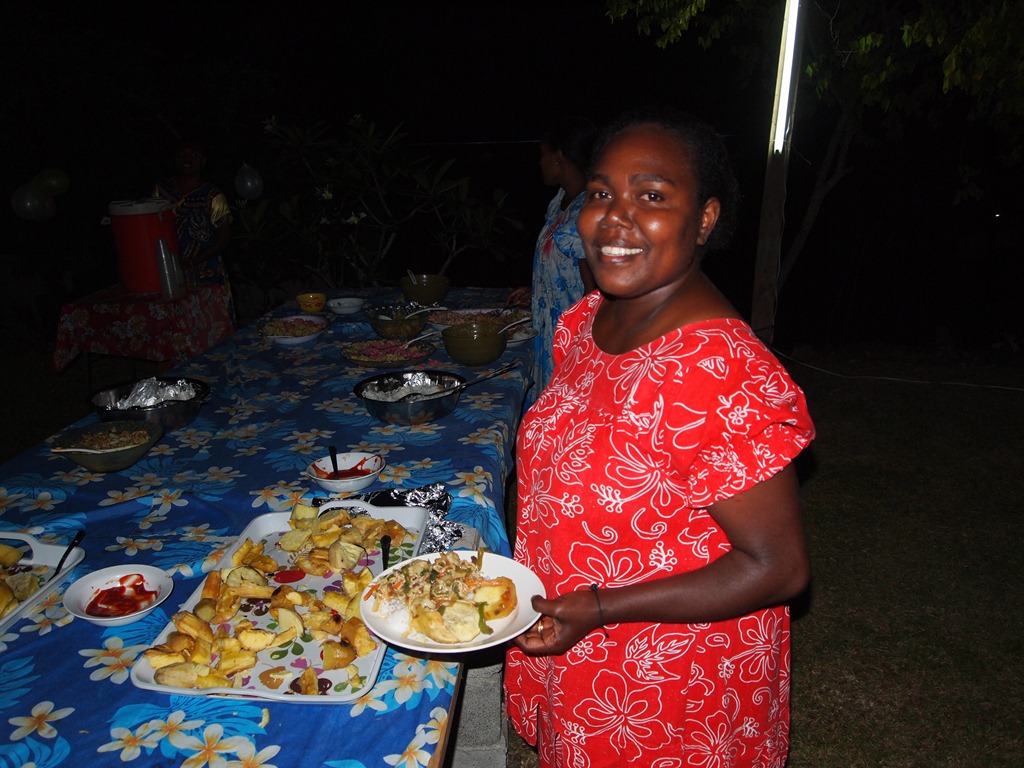 Left photo above: 2nd year student, Jonah Ravo; Mrs. Faith Maimai, faculty spouse; and Michel Moli, first year student serving food. Right photo above: Mrs. Serah Naias, faculty spouse.