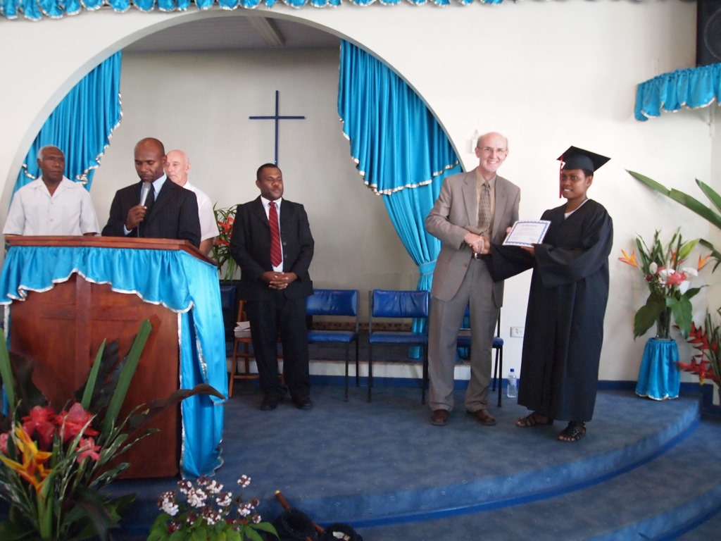 What a special moment for Gary (Rev. J. Gary Ellison, JBI Principal), to present the graduates with their diplomas and certificates. We thank the Lord for a wonderful school year and the commitment of these young men and women. Pray for them as they return to their home islands for ministry.