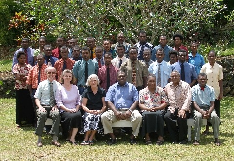 Here is the official photo of the JBI faculty and students. Seated on the front row, (left to right) J. Gary Ellison, Lori Ellison, Kay Rudd, Principal Edgell Iolopua, Agnes Fave, Emmanuel Fave and Philip Naias. Second row is the graduating class. Third row is the second year students and the back row is the first year students.