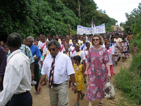 The 16th Shefa Province Assemblies of God Conference was held August 26-30, 2007 at the village of Eratap, on the island of Efate. The theme was “Be Doers of the Word” from James 1:22. The Conference started with the hundreds of delegates, pastors, and our family marching down road to the meeting site.