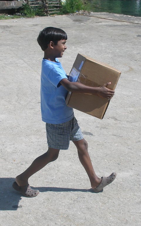 on’t come and don’t go, ships are on time and most are repeatedly delayed! The ship which took the boxes that Jeremy is seen carrying, stayed an extra 6 days in dock before leaving! Though it can be a challenge sending church supplies to the outer islands, our outer island pastors are grateful for any literature and church supplies which come their way.