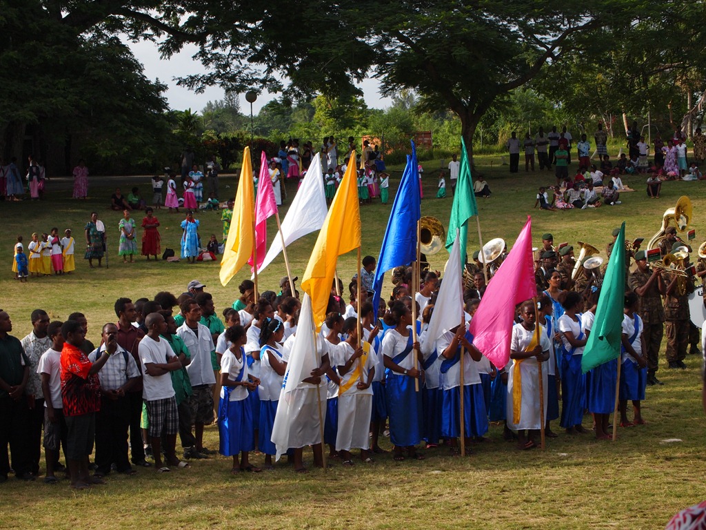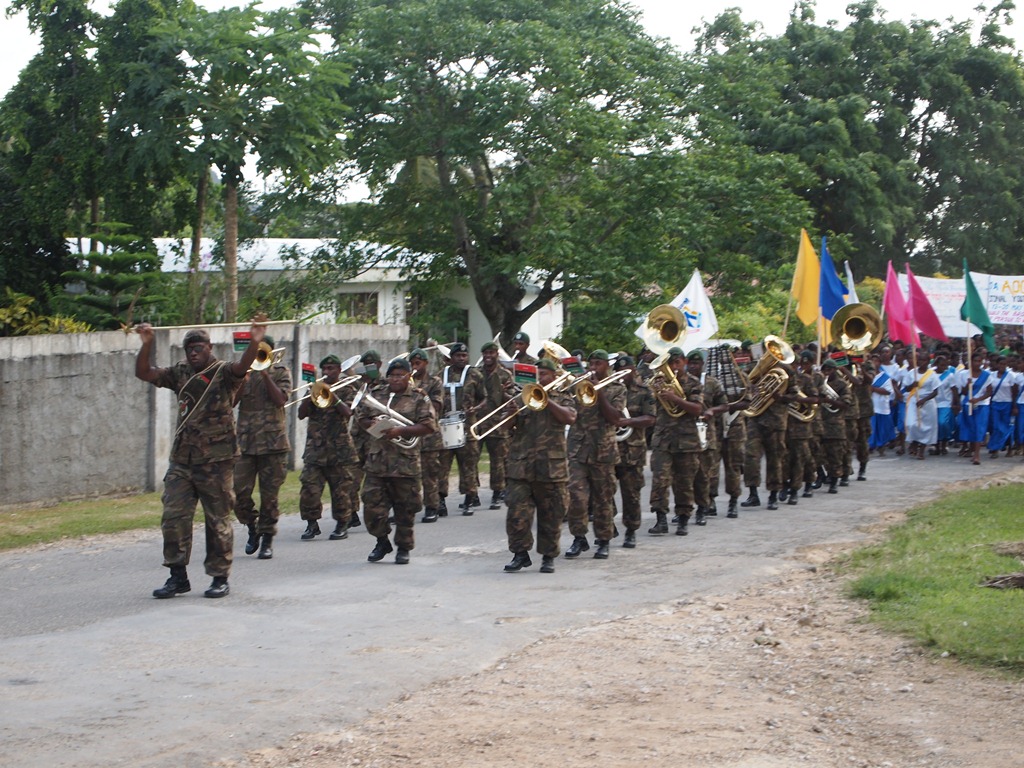 Vanuatu Mobile Force band leading the youth parade. Missionnettes in parade.
