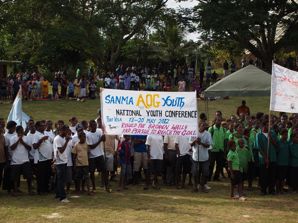Sunday, May 13, 2012, was the opening ceremony for the weeklong National AOG Youth Conference. Youth from many islands marched through Port Vila to Saralana Park following the Vanuatu Mobile Force band to officially open the conference. After several speeches and special music, Rev. Dick Hopkins preached.