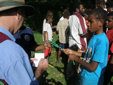 Today the first “Royal Ranger Vanuatu Field Day” was held on the church property of We Care Assembly of God. Thanks to the hard work of Australian colleagues, Russell and Robyn Harbour, Royal Rangers is getting a new lease on life here in Vanuatu. Eighty boys were in attendance from 4 different Assemblies of God churches. They had a great time learning new skills and competing in games. Lori was invited to come out and give a devotional at the end of the day since her mother started the first Royal Ranger troop in Vanuatu in the mid-1970’s.