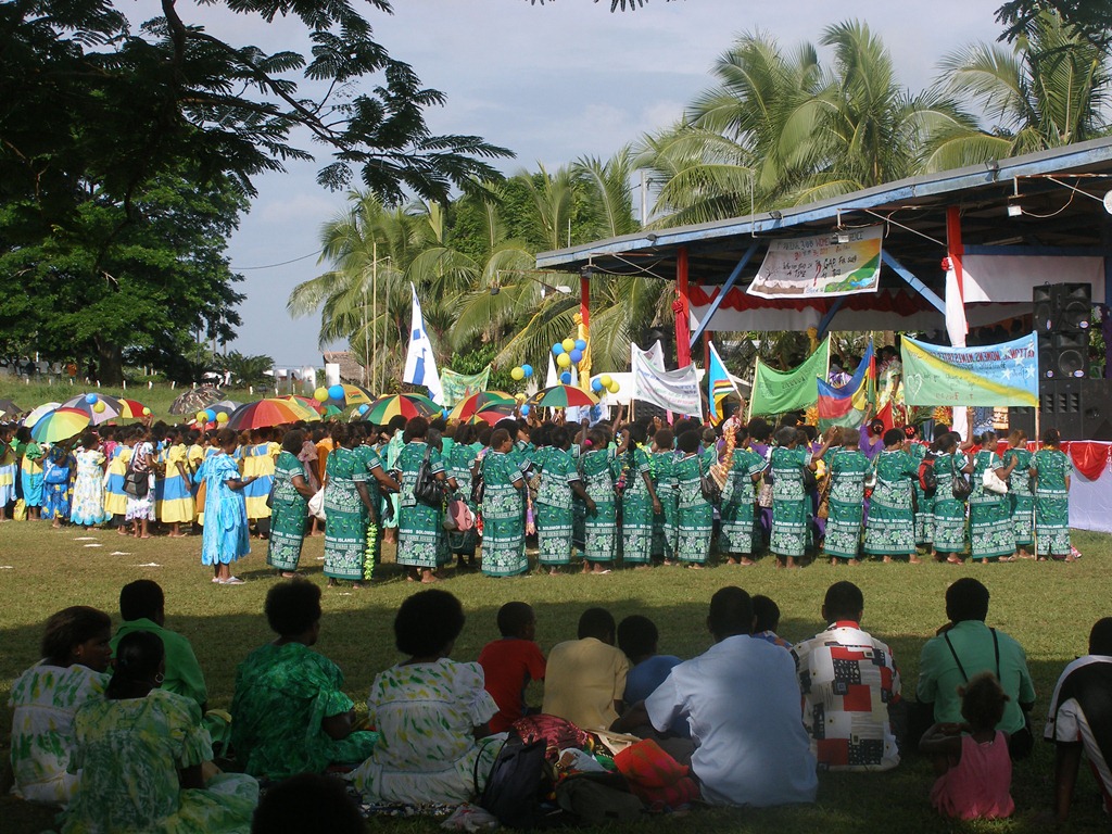 National WM Conference started this Sunday afternoon with a bang…actually it was a marching military band and a parade through downtown Port Vila that started things off! Delegates from every province of Vanuatu (including myself) in matching island dresses and a large group of ladies from the Solomon Islands marched behind the Vanuatu Mobile Force band up to Saralana Park where the conference will be held this week.